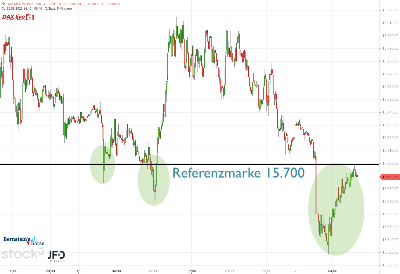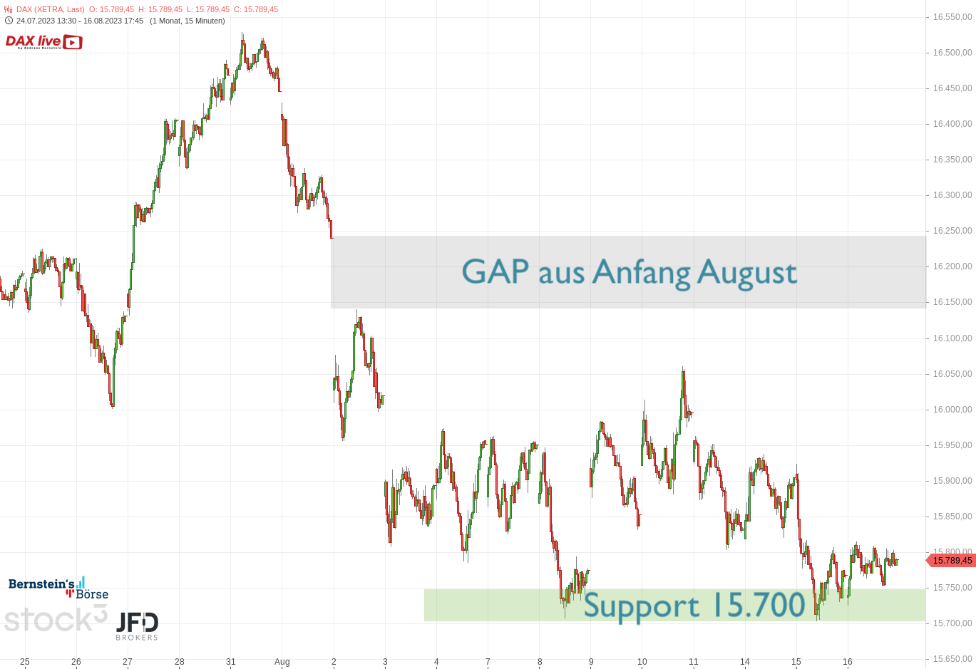 Übergeordnet ist damit der große Support um 15.700 und auch die 15.800 als kleinere Widerstandszone weiter relevant: