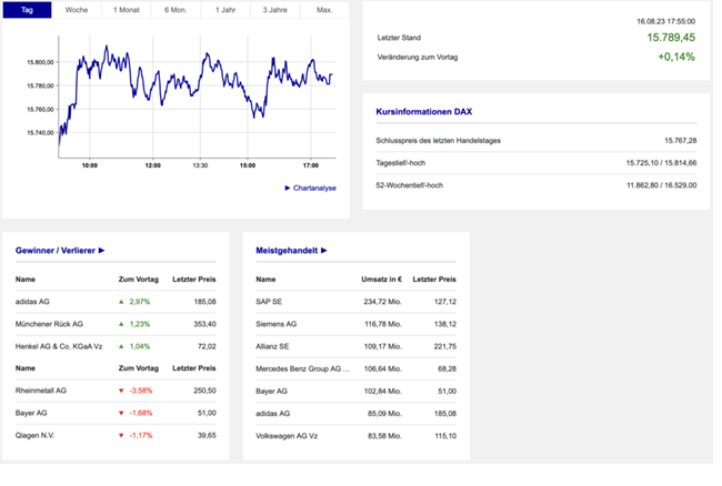 Zwischen der Erholung auf 15.800 Punkte und der 15.700er-Region blieb der DAX am Ende und vollzog damit einen Inside Day im Chartbild: