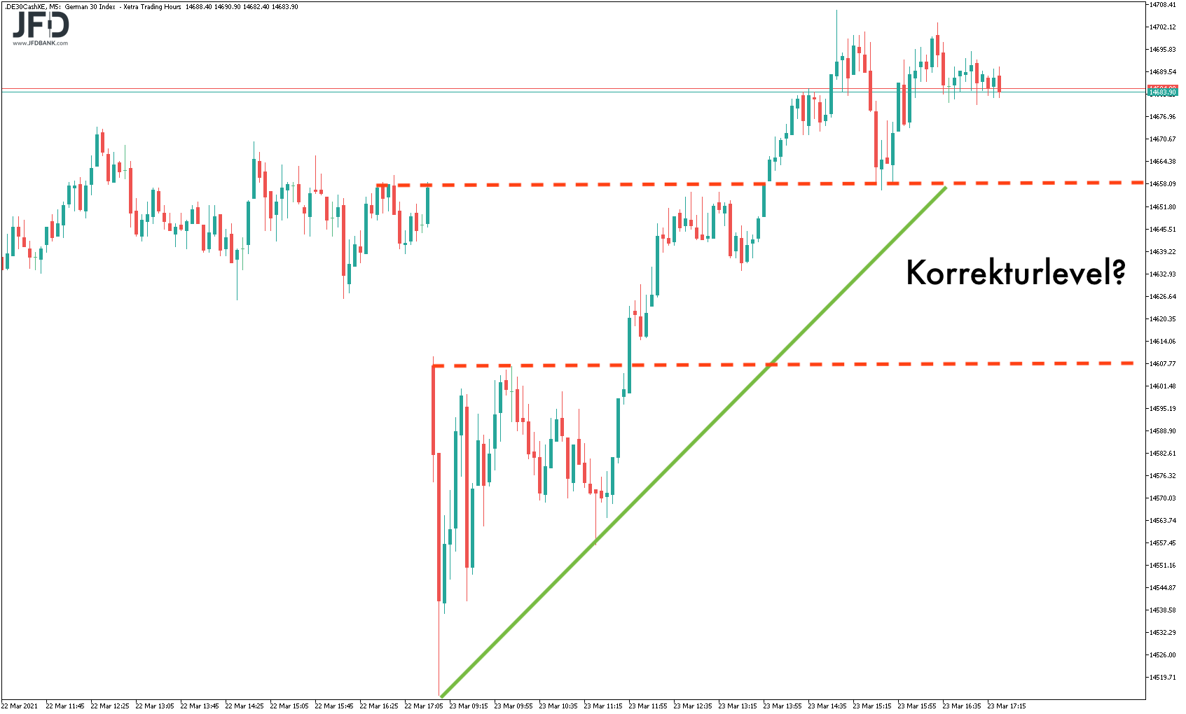 Szenario für den 23.03.2021 im DAX