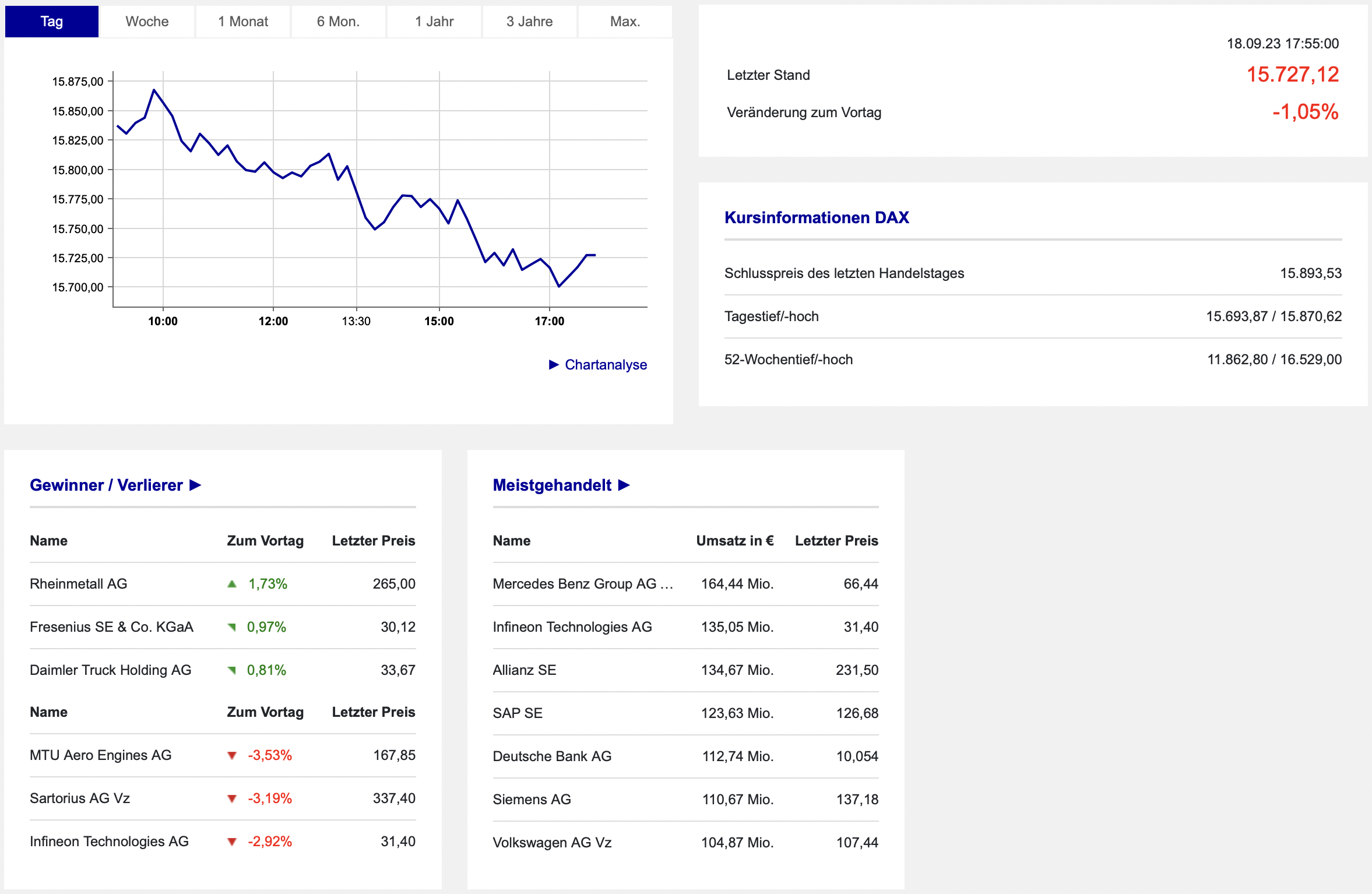 Die Daten der Börse Frankfurt fassen den Handelstag noch einmal zusammen:
