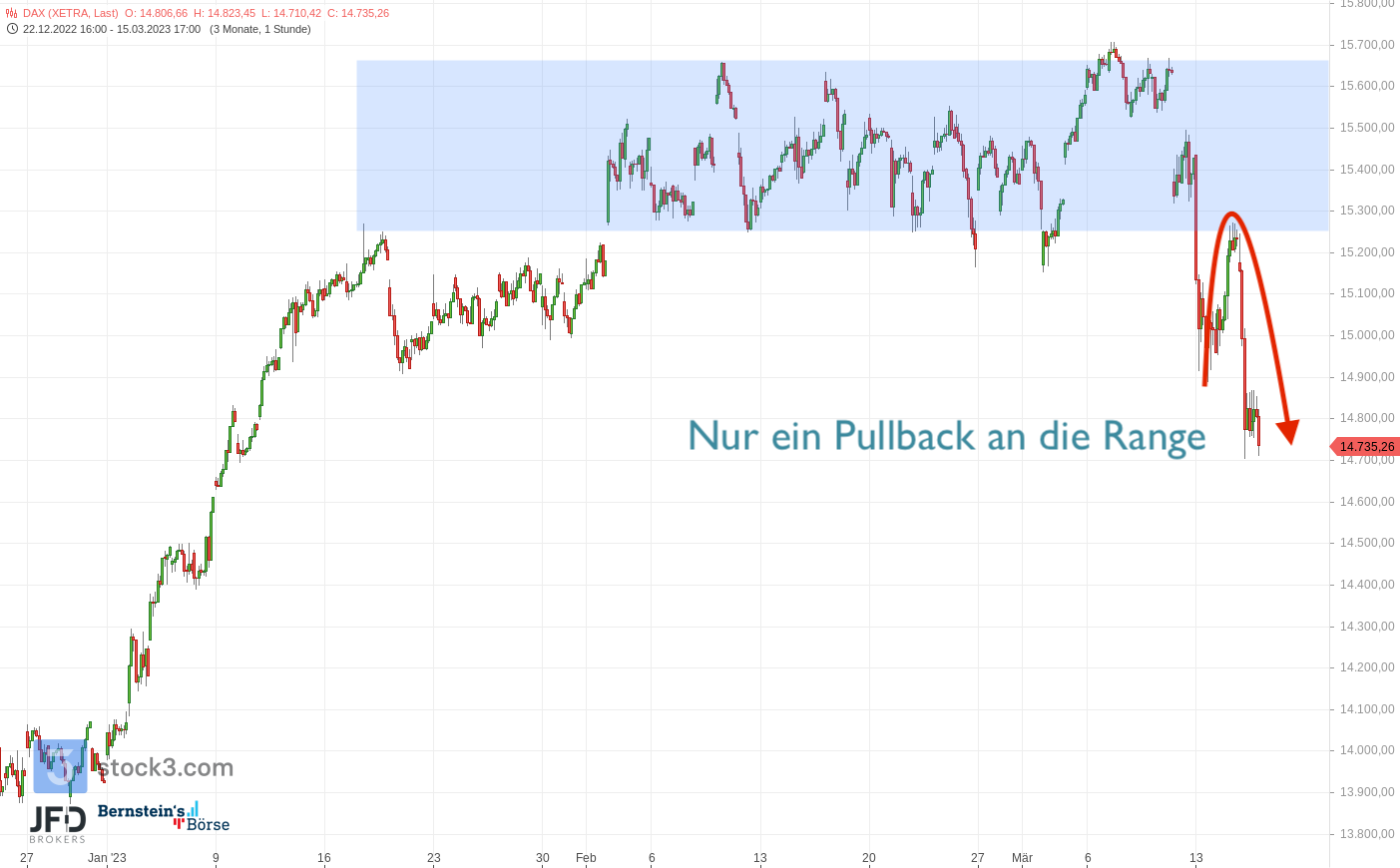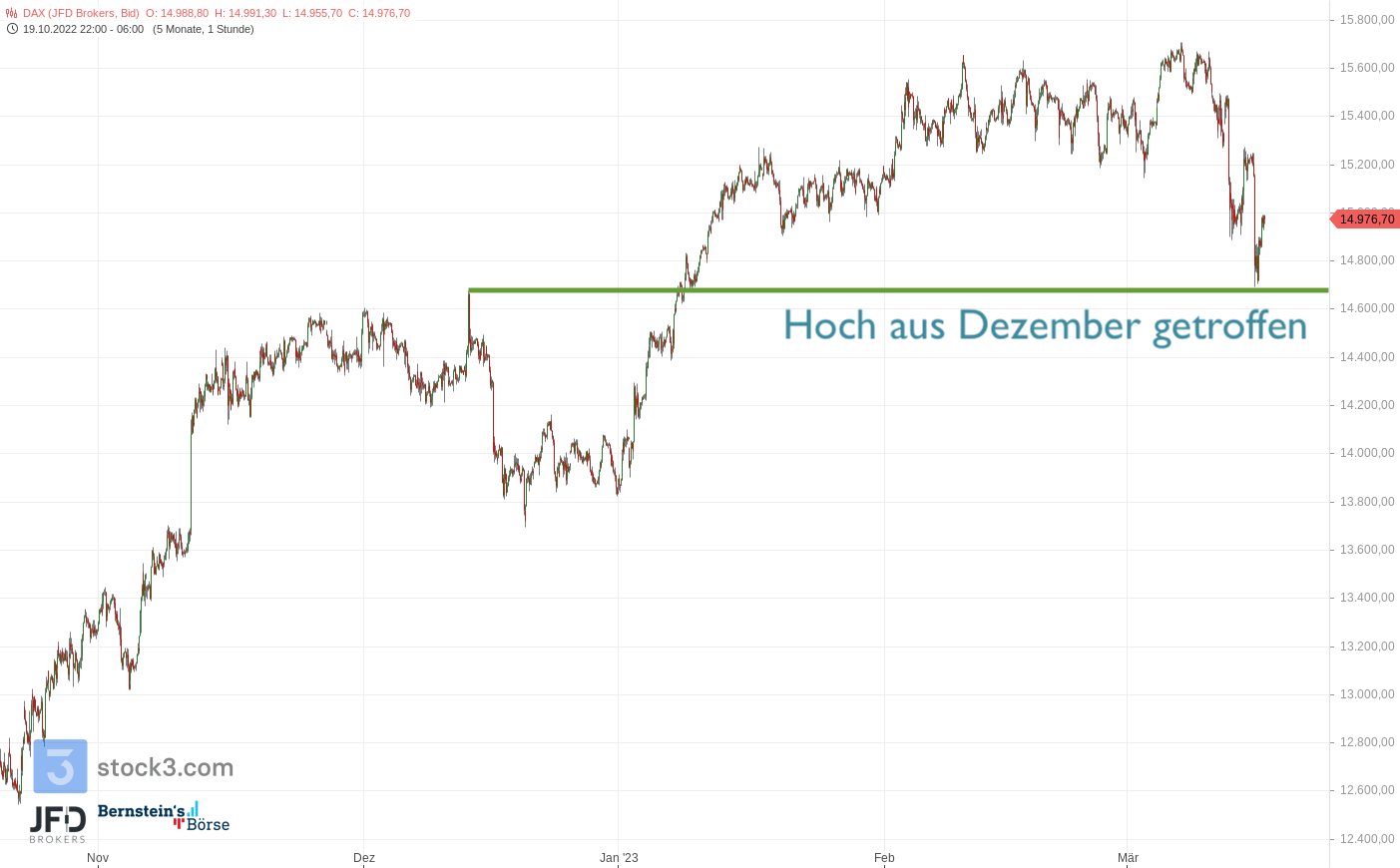 Nach dem Abprall an der Range kam der DAX im Tief den Hochs von Dezember sehr nah: