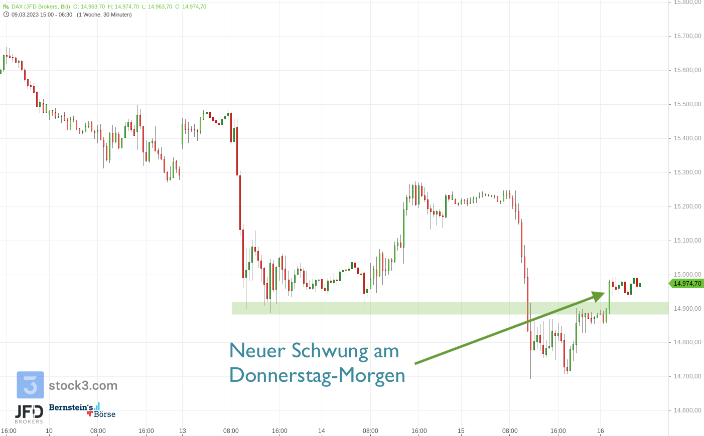 Eine solche Erholung ist vielleicht schon vorbörslich erfolgt, zumindest beim Blick auf den Endloskontrakt. Denn dort ist der 14.900er-Bereich wieder erobert: