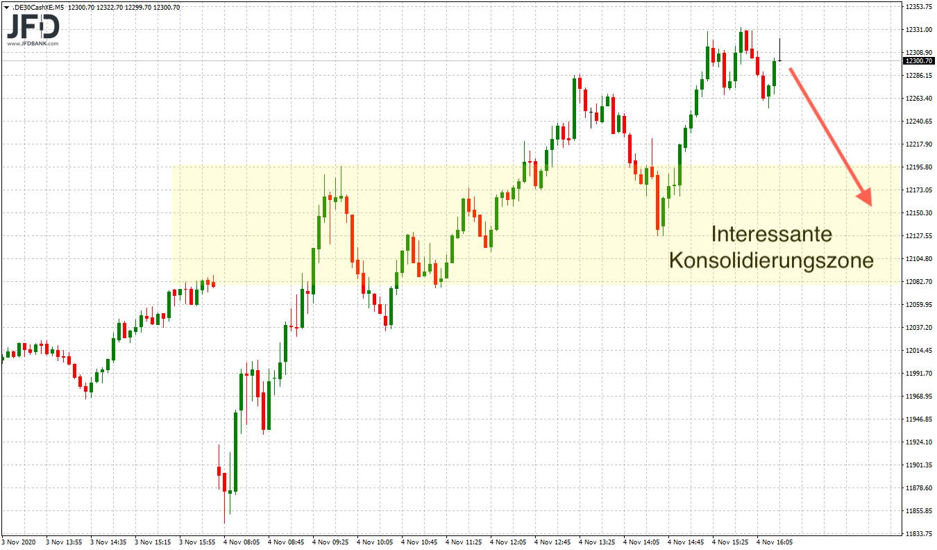 Aus der Vorbörse heraus ist dieses Szenario, also ein weiterer Anstieg des DAX bis in den GAP-Bereich hinein, durchaus annehmbar: