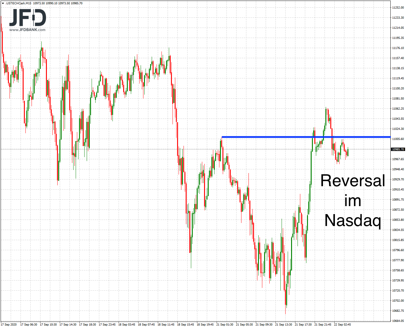 Interessant war gestern nach dem XETRA-Schluss das Reversal im Nasdaq:
