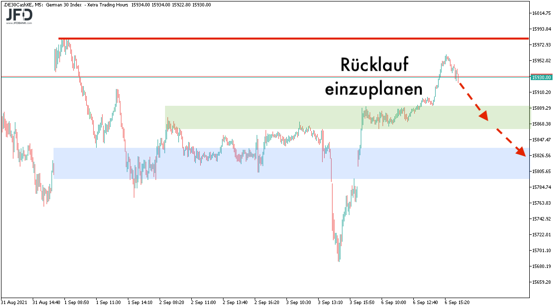 XETRA-DAX Entscheidungszone am 08.09.2021