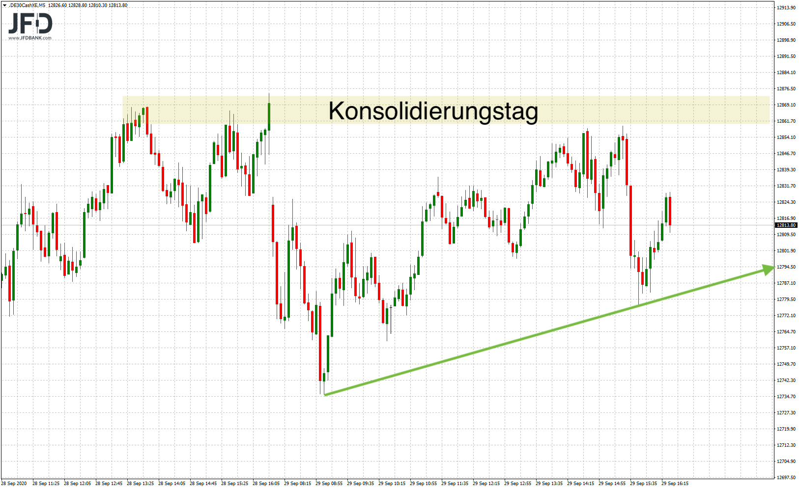 Dabei nahm die Volatilität wieder ab, wie man an den Eckdaten des Handelstages sehen kann: