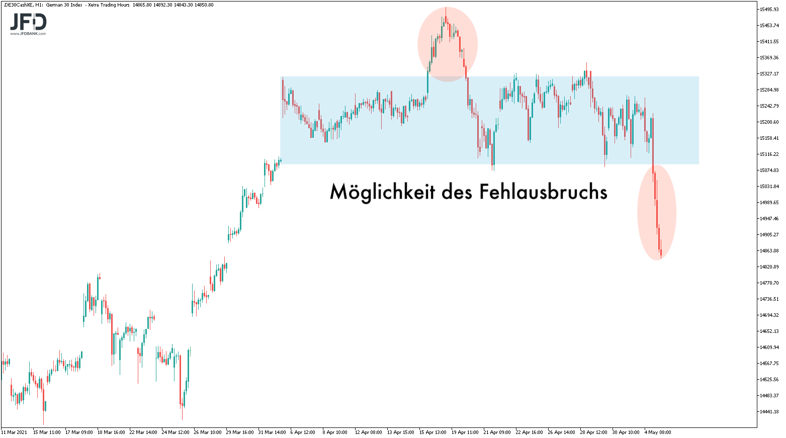 Natürlich besteht auch die Möglichkeit auf einen Fehlausbruch, wie wir ihn mit dem Rekordhoch bei 15.501 Punkten gesehen hatten: