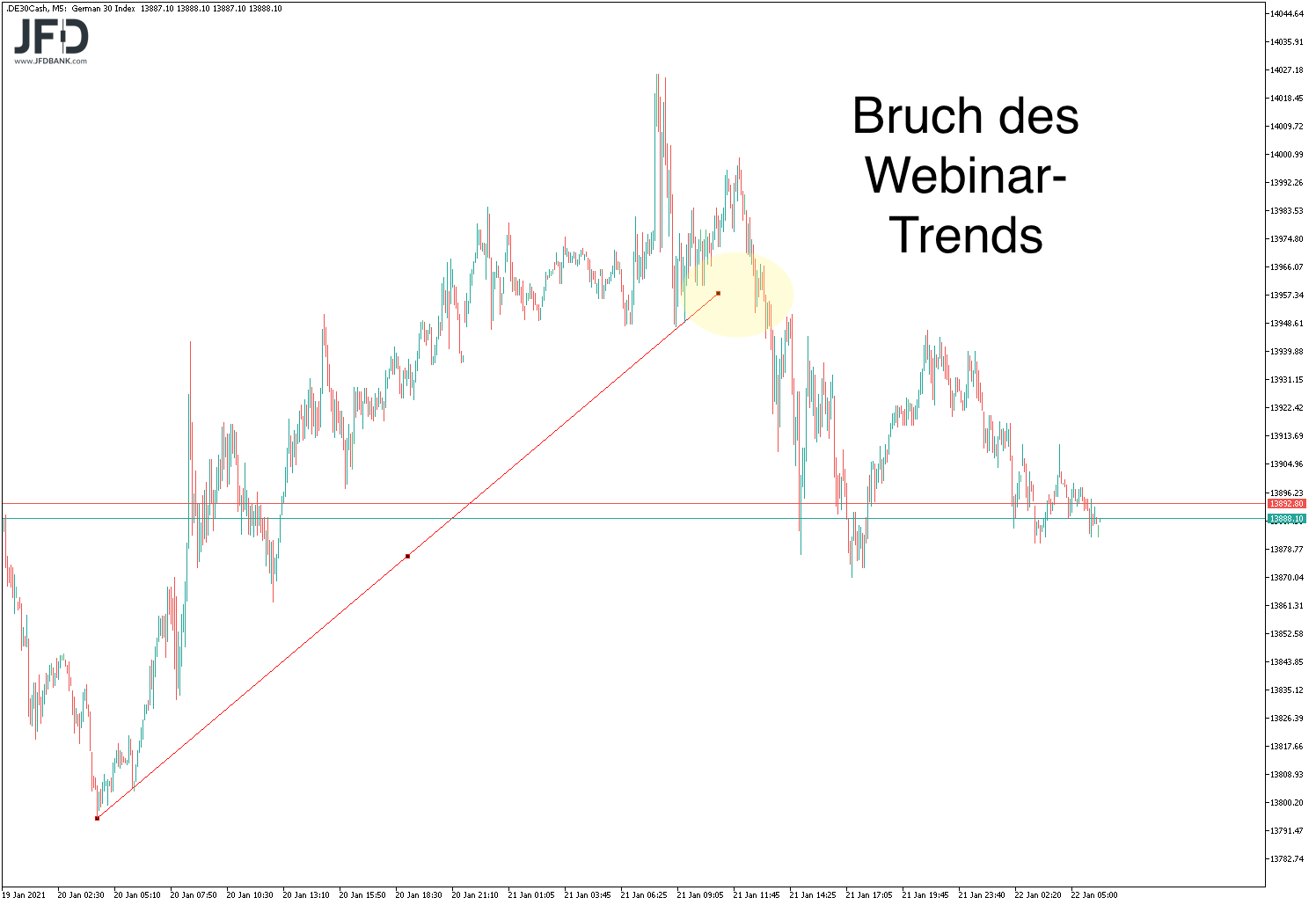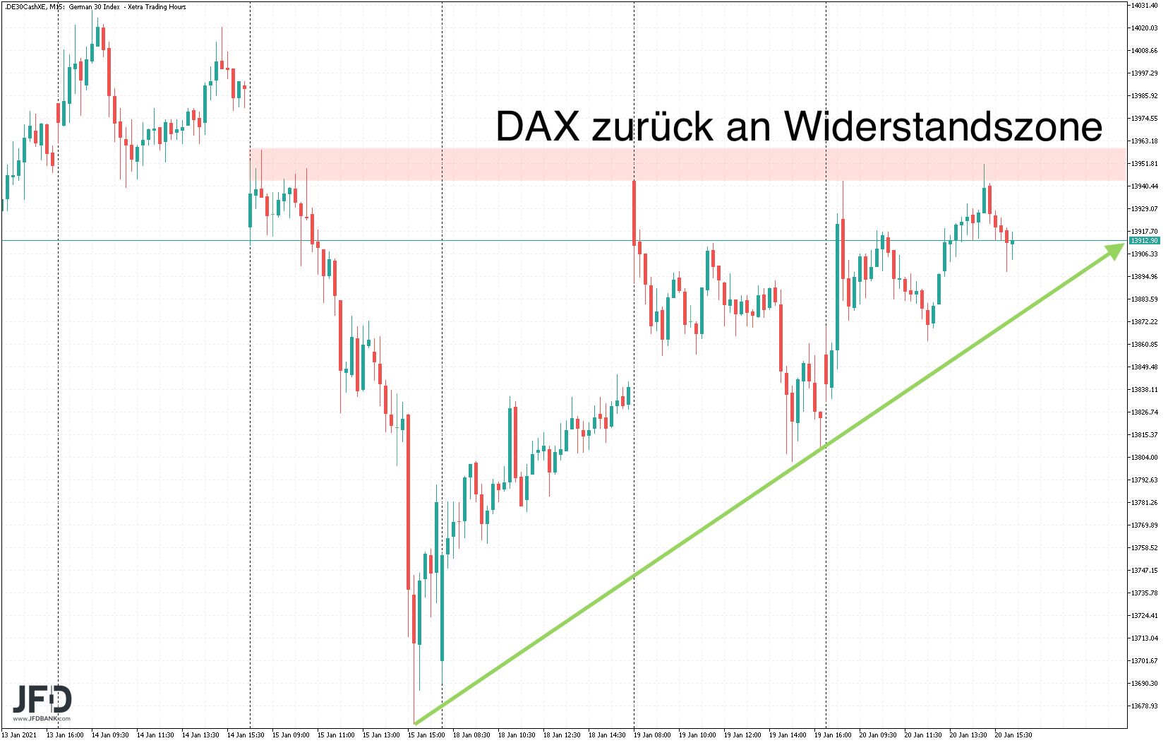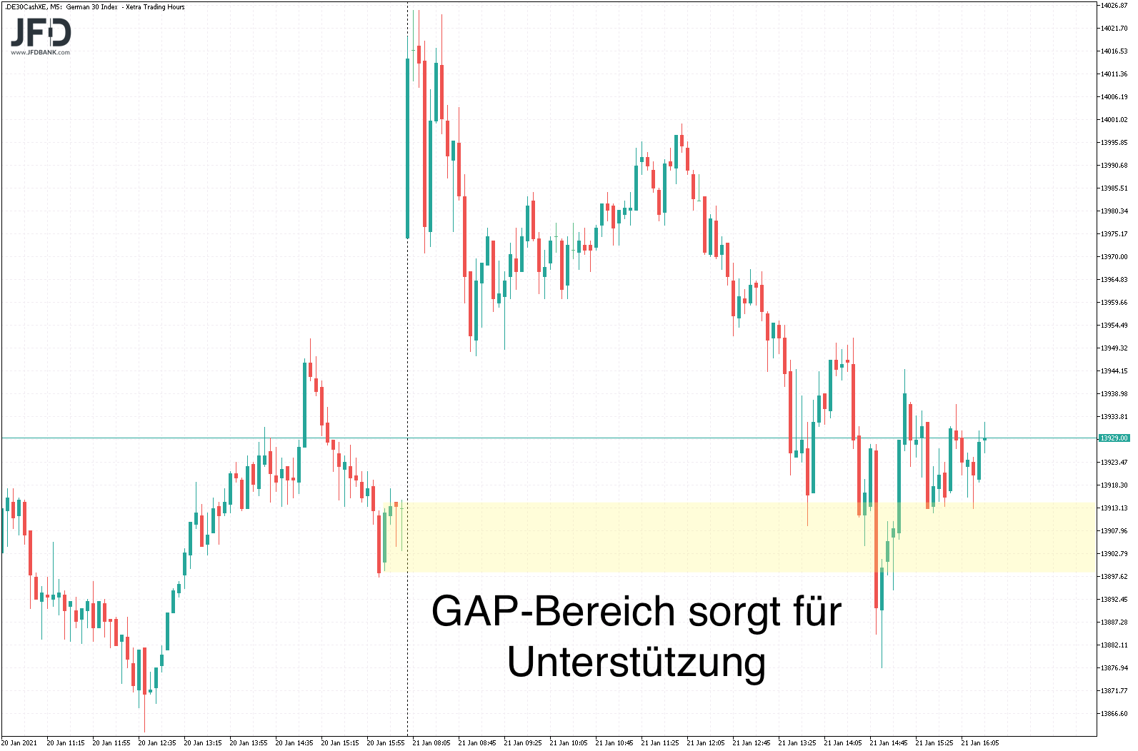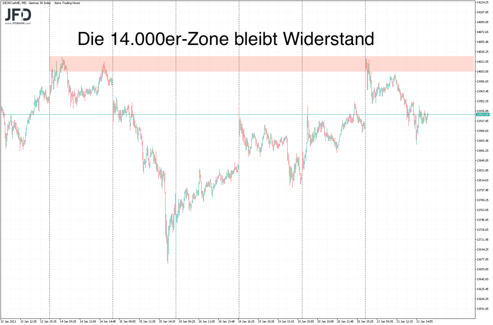 Damit kam es nun erneut um die 13.900 zu einem Auspendeln des Handels: