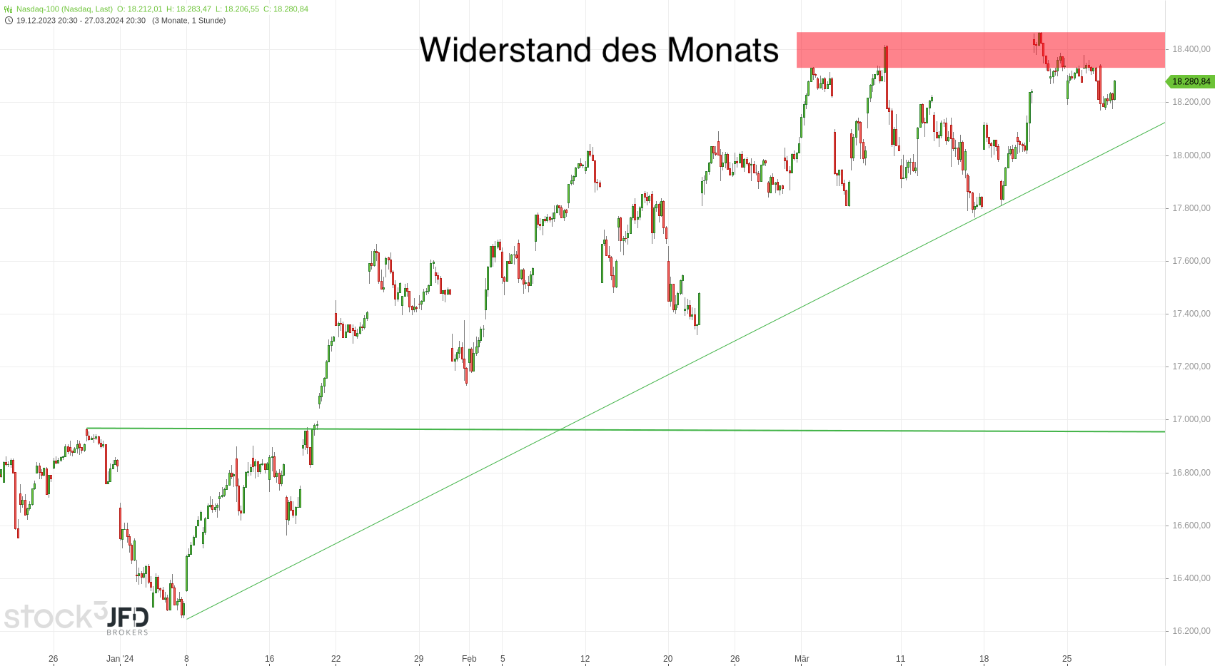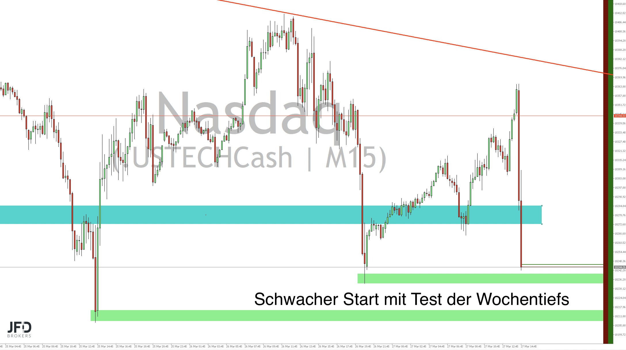 Im Nasdaq sahen wir die größte Dynamik zunächst auf der Unterseite und testeten das Wochentief: