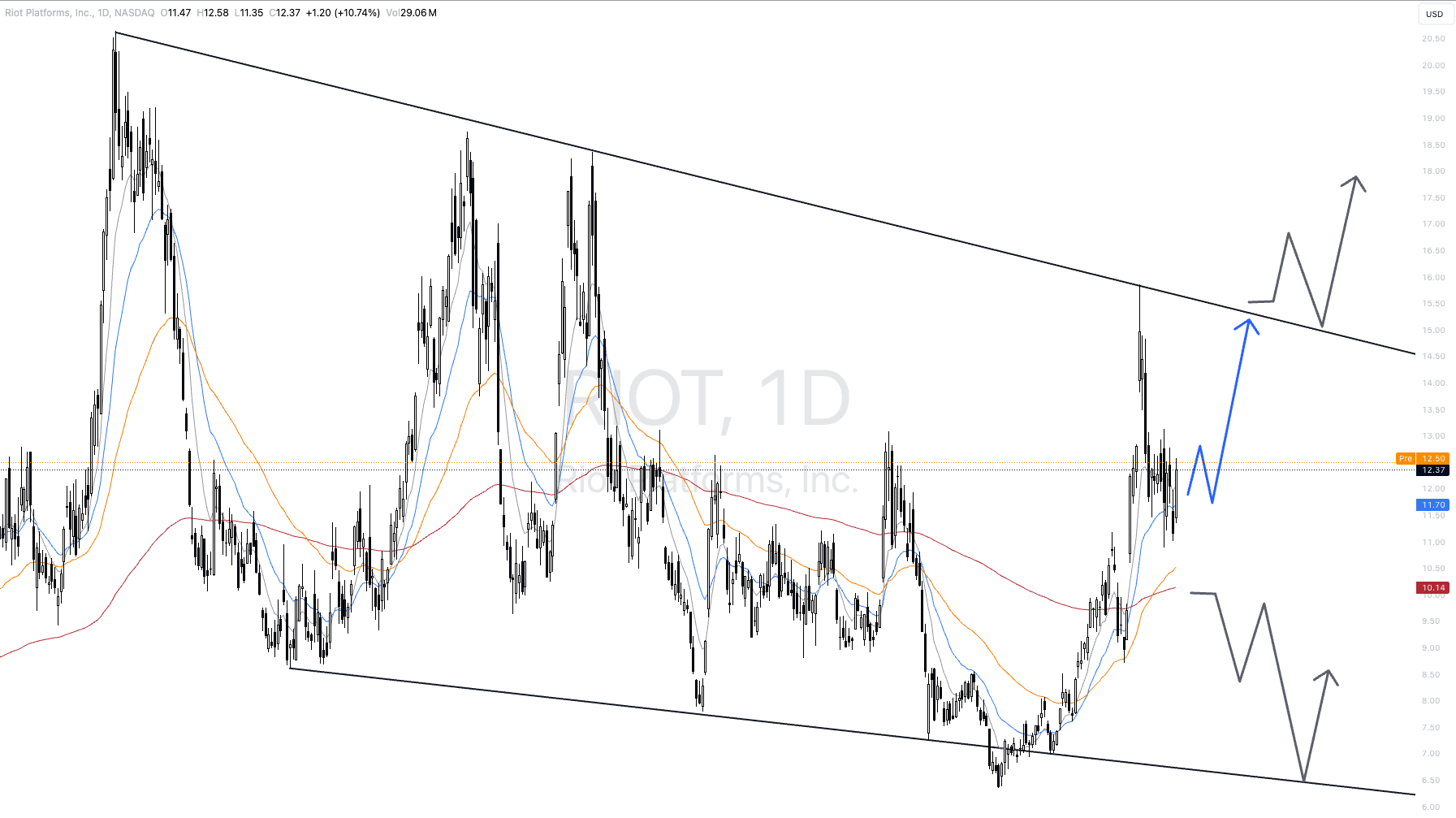 Fällt die Aktie allerdings unter 10 USD, so muss dieses Hauptszenario aufgegeben werden. Ein erneuter tiefer Rücksetzer bis mindestens 6,50 wäre dann zu erwarten.