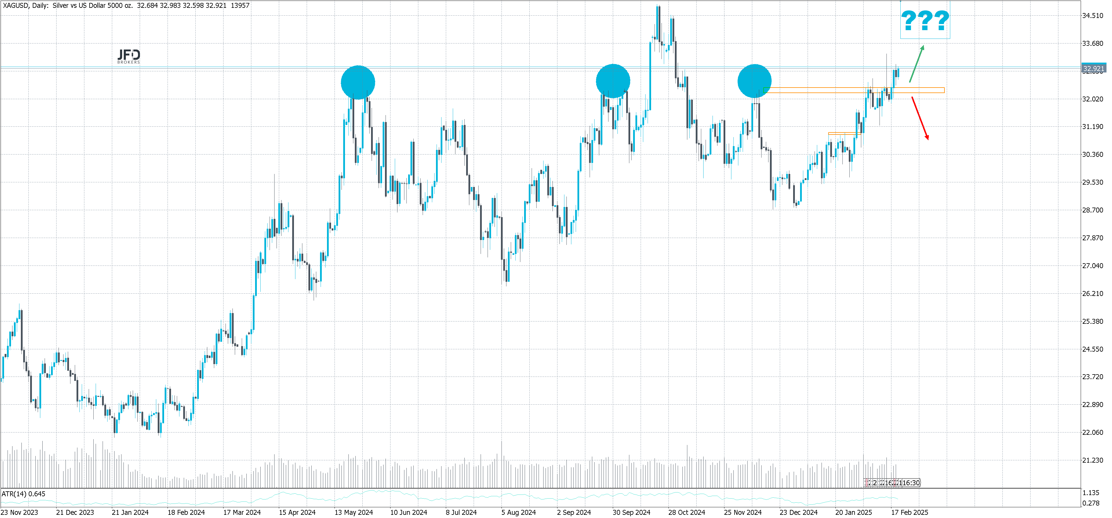 ✅ Bullisches Szenario: Solange sich Silber oberhalb von $32,20 hält, bleibt der Weg in Richtung $35,00 intakt.