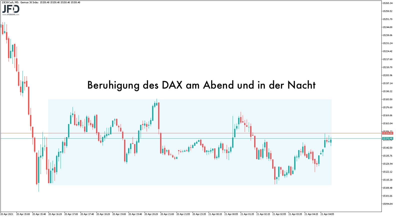 Nach dieser stärkeren Korrektur fing sich der Markt erst einmal im Nachthandel und verharrte in dem Bereich, der durch die Tiefs gestern und den XETRA-Schluss umrahmt wurde: