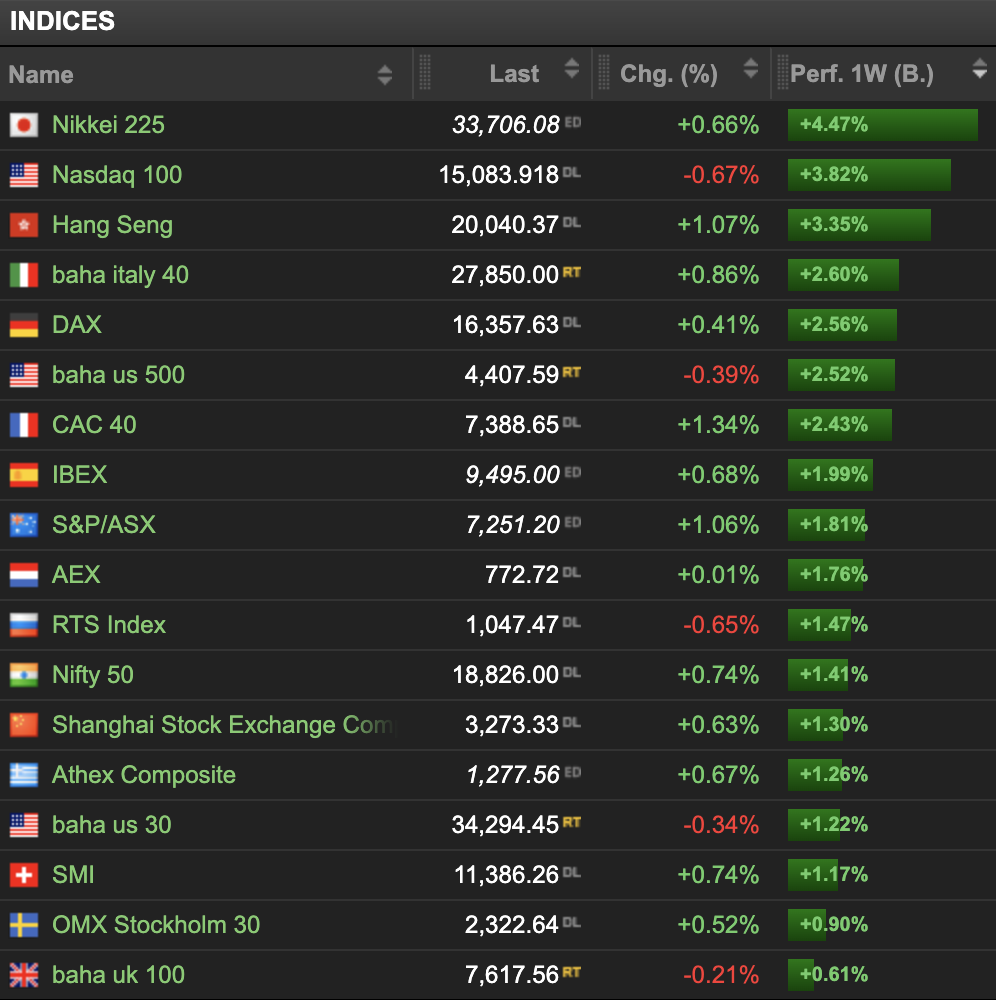 Damit war der Nasdaq auch der stärkste Index im Wochenvergleich und rangierte wieder vor dem DAX: