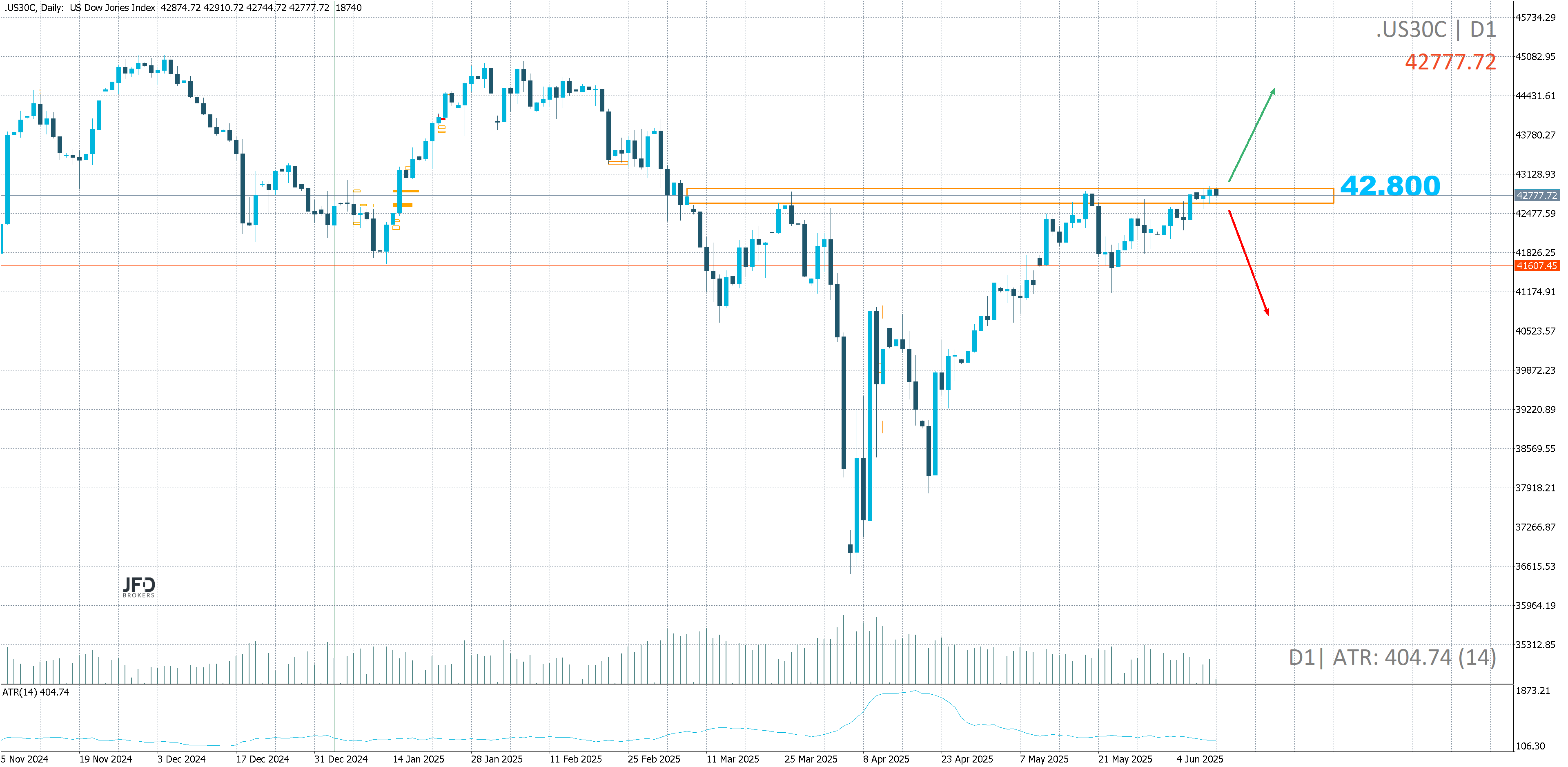 JFD Brokers bietet ausschließlich beratungsfreie Dienstleistungen an. Der Inhalt dieser Analyse enthält keine Anlageberatung bzw. Anlageempfehlung (und darf auch nicht als solche verstanden werden) und stellt keinesfalls eine Aufforderung zum Erwerb von jeglichen Finanzinstrumenten oder -produkten dar. JFD Brokers haftet nicht für Schäden, welche auf einzelne Kommentare und Aussagen auf Analysen von der JFD Brokers zurückzuführen wären / sind und übernimmt keine Gewähr in Bezug auf Vollständigkeit und Richtigkeit des dargestellten Inhaltes. Somit trägt der Anleger ausschließlich alleinverantwortlich das Risiko für seine Anlageentscheidungen.
