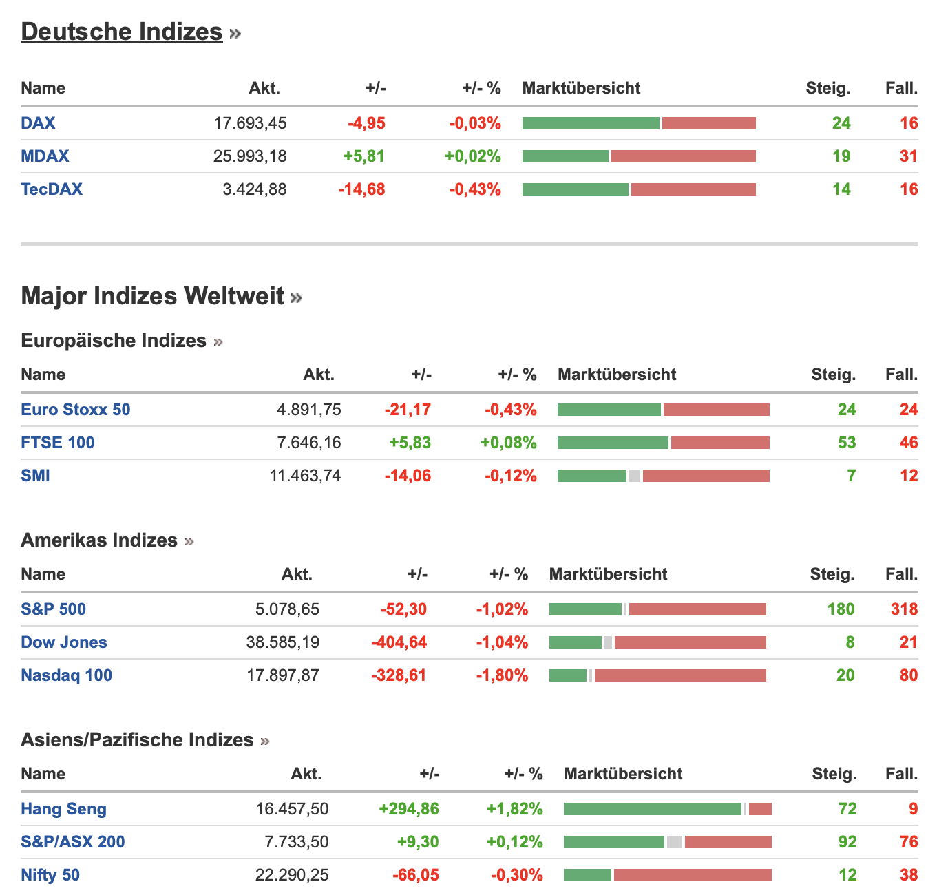 Wir schauen somit nun auf die Vorbörse und die US-Indizes mit der gestrigen Entwicklung.