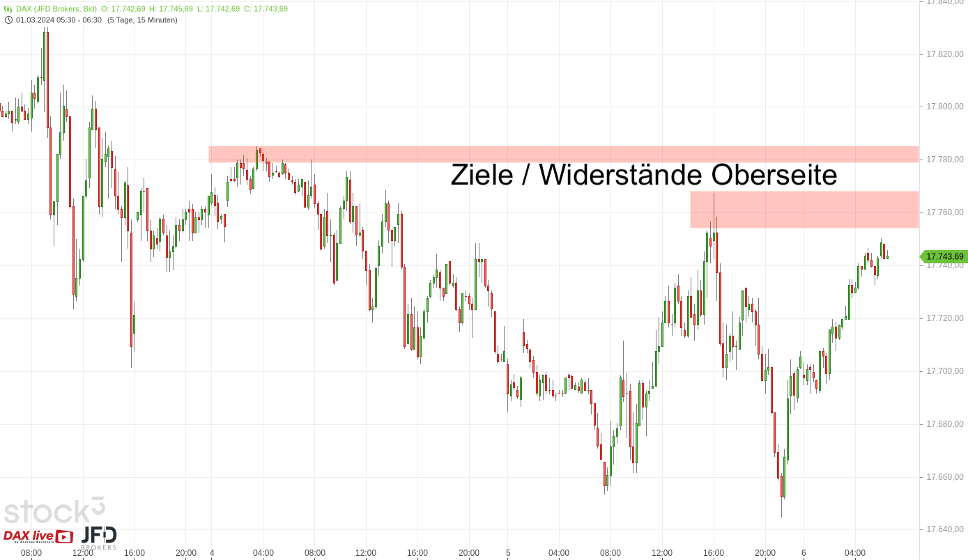 Eine Erholung in China könnte heute auch wieder positive Auswirkungen auf den weiteren Verlauf haben. Weitere Ziele auf der Oberseite, wie das gestrige Hoch, sind in Sichtweite und mit den Indikationen der Vorbörse hier für Dich hinterlegt: