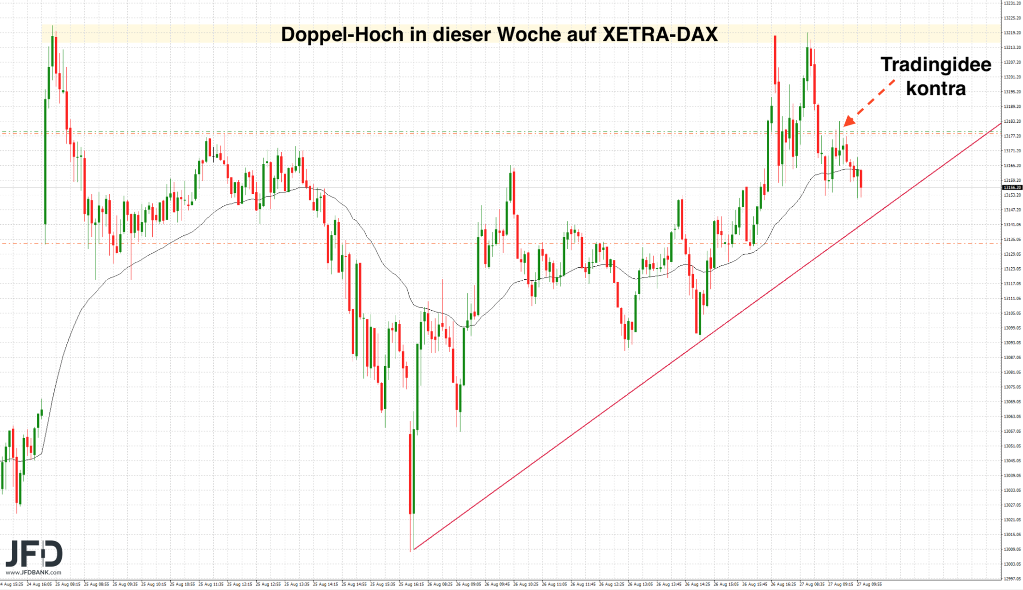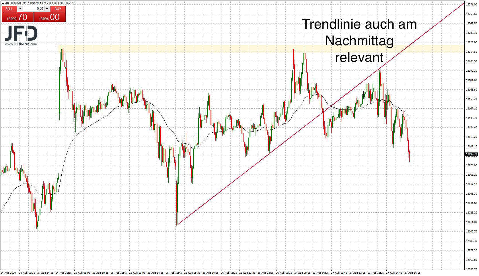 Eine abwartende Haltung legte der DAX nach der starken Eröffnung ein. Diese brachte genau das Wochenhoch auf den Plan. Skizziert hatten wir den Bereich gestern hier mit 13.221 Punkten - es sind letztlich die 13.218 im Hoch geworden.