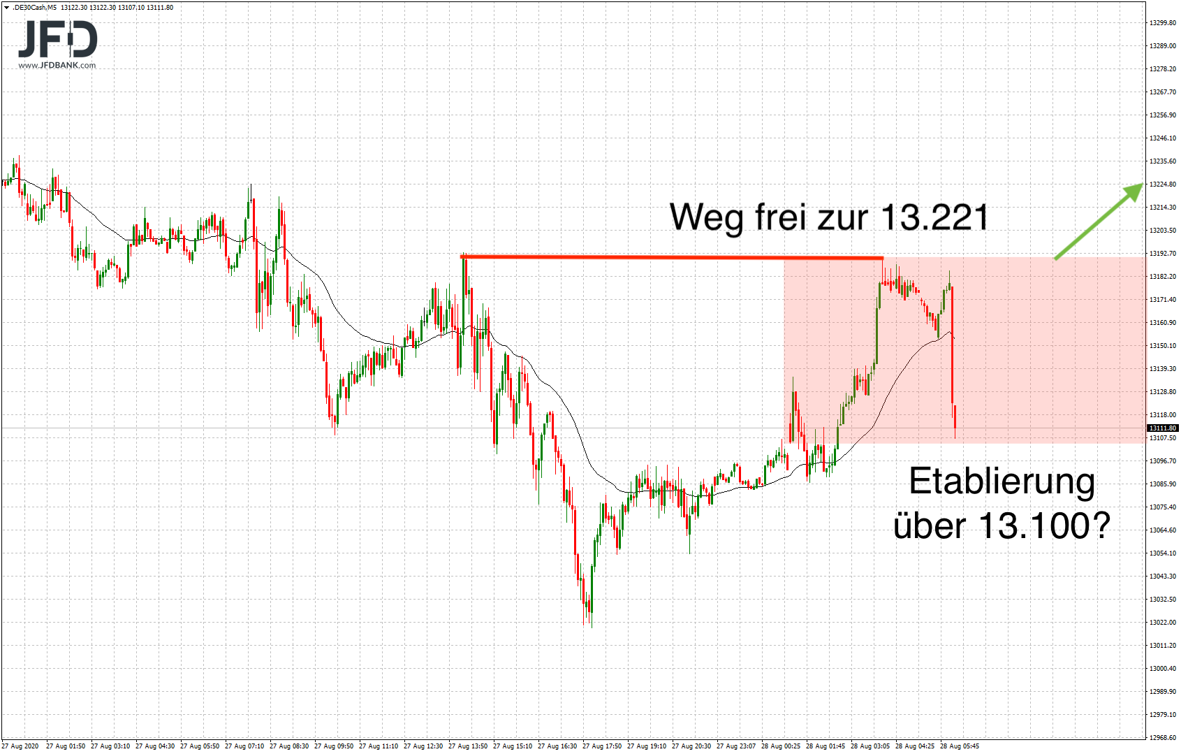 • 13.190 auf der Oberseite (Dienstag-Schluss) als Trigger für Ziel 13.221