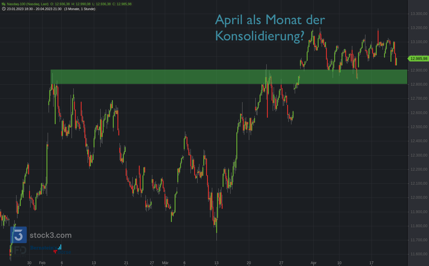 Der Nasdaq bleibt somit weiterhin in einer breiten Konsolidierungszone und schwankt in dieser sehr heftig: