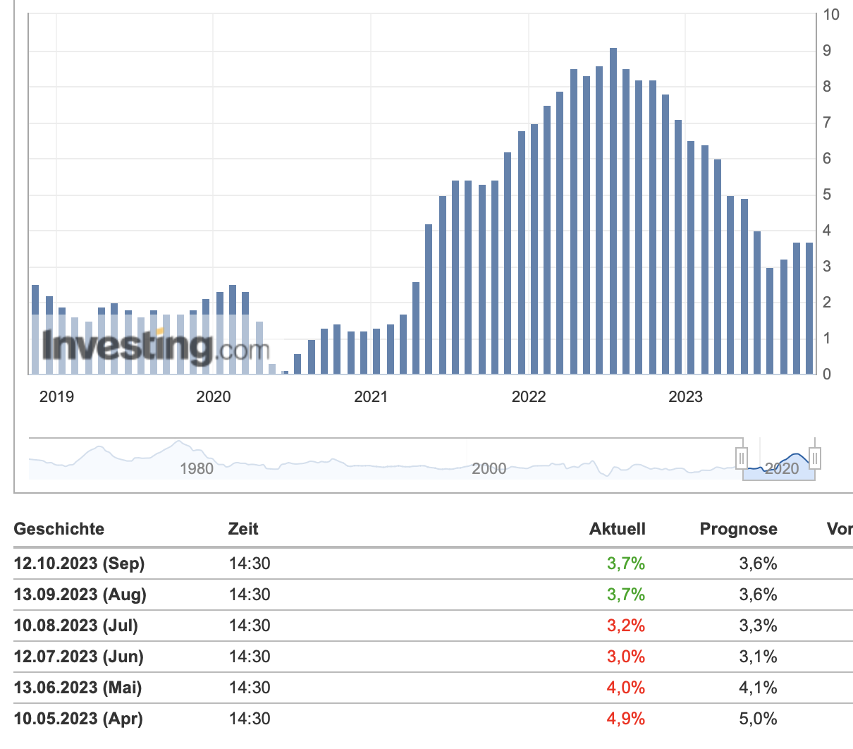 Die Position wurde entsprechend gemangt und mit Gewinn geschlossen, auch wenn das Ziel dann erst am Nachmittag erreicht wurde. Und zwar im Zuge der US-Daten, die ich hier ebenfalls mit einpflege und die keine Veränderung bei der US-Inflation im Vergleich zum Vormonat aufzeigten: