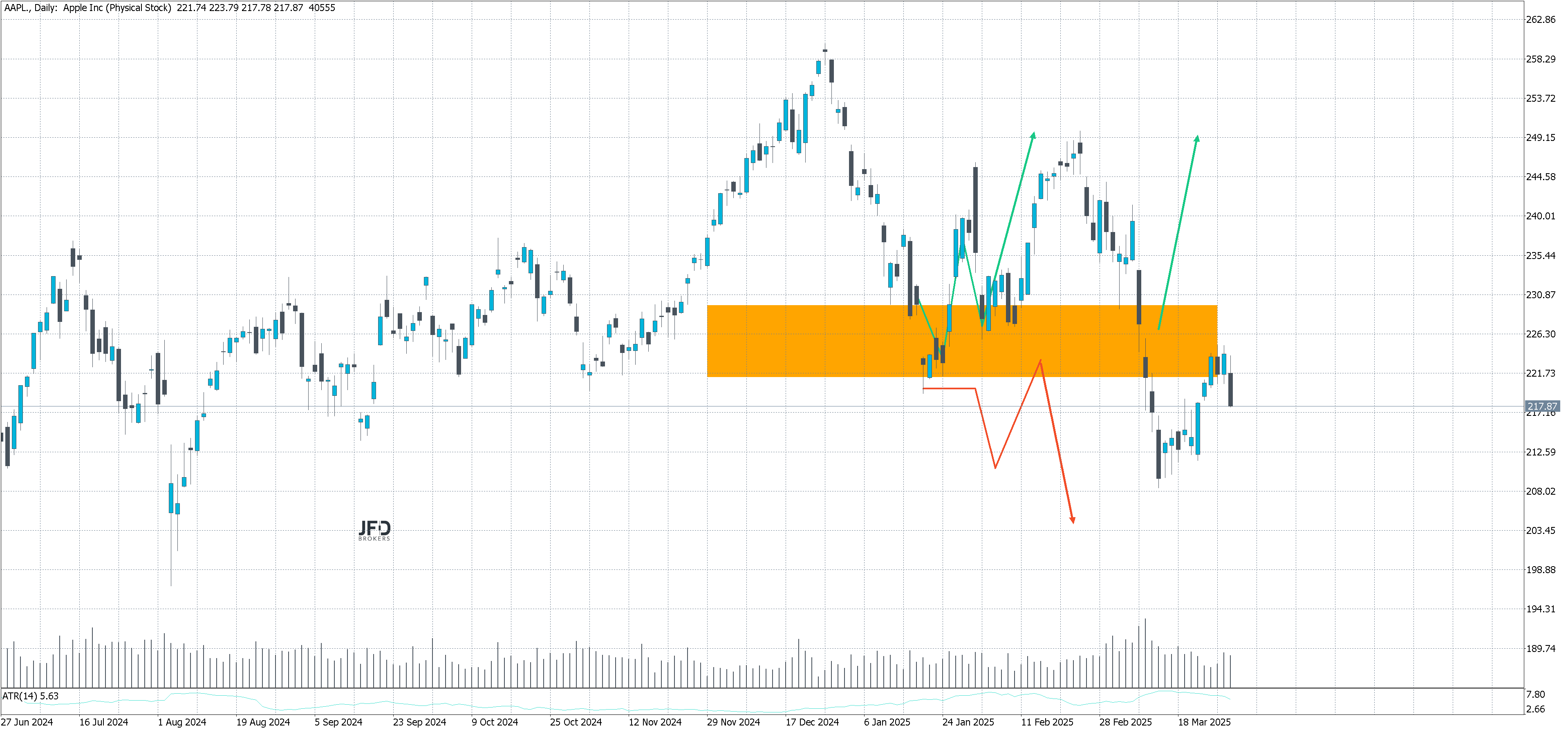 A few days ago, we analyzed Apple and highlighted the $225 support zone as a key level. This area was broken with strong momentum and is now being tested from below – a potential opportunity for sellers?