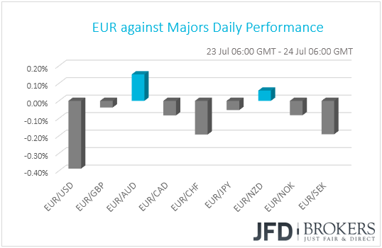 The euro traded lower or unchanged against all but one of its G10 peers. The common currency underperformed against USD, CHF, SEK, CAD and NOK, while it traded virtually unchanged versus GBP, JPY and NZD. It gained only against the AUD.
