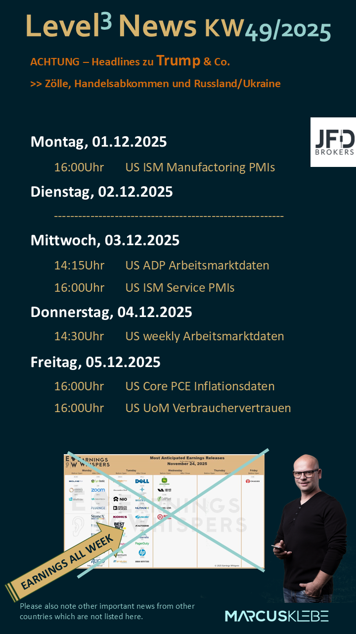 In the coming week, market attention will once again focus on a series of key economic indicators that are likely to set the tone for equities, currencies, and bond markets. Particularly in focus are the U.S. data releases, many of which have been significantly delayed due to the recent government shutdown. This creates an unusual situation: market participants must digest several postponed reports at once – many of them highly relevant for inflation and interest rate expectations.