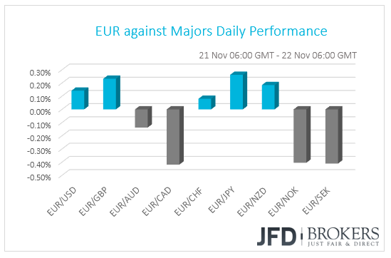 During the European morning, we get the minutes from the latest ECB policy gathering. At that gathering, the Bank kept its policy unchanged as was widely expected, reiterating, but not confirming, that asset purchases are likely to end in December. At the press conference, Draghi downplayed the softness in economic data, repeating that the risks surrounding Eurozone’s economic outlook remain broadly balanced. Thus, investors may be eager to find out whether other officials, besides Draghi, were also upbeat on the bloc’s economic outlook.