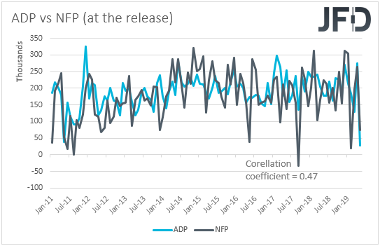 In the US, markets will close early as it is the Independence Day Eve. We do however get some US data. The ADP employment report for June is scheduled to be released, and expectations are for the private sector to have gained 140k jobs, more that May’s poor 27k. This could raise speculation that the NFP print, due out on Friday, may also rebound from its previous soft figure of 75k. That said, we repeat for the umpteenth time that, even though the ADP is the only major gauge we have for the non-farm payrolls, the correlation between the two time-series at the time of the release (no revisions are considered) has been low in recent years. Taking into account data from January 2011, that correlation now stands at 0.47%. The final Markit services and composite PMIs for June, the ISM non-manufacturing index for the month, the trade balance for May, and initial jobless claims for the week ended on June 28th are also due out.