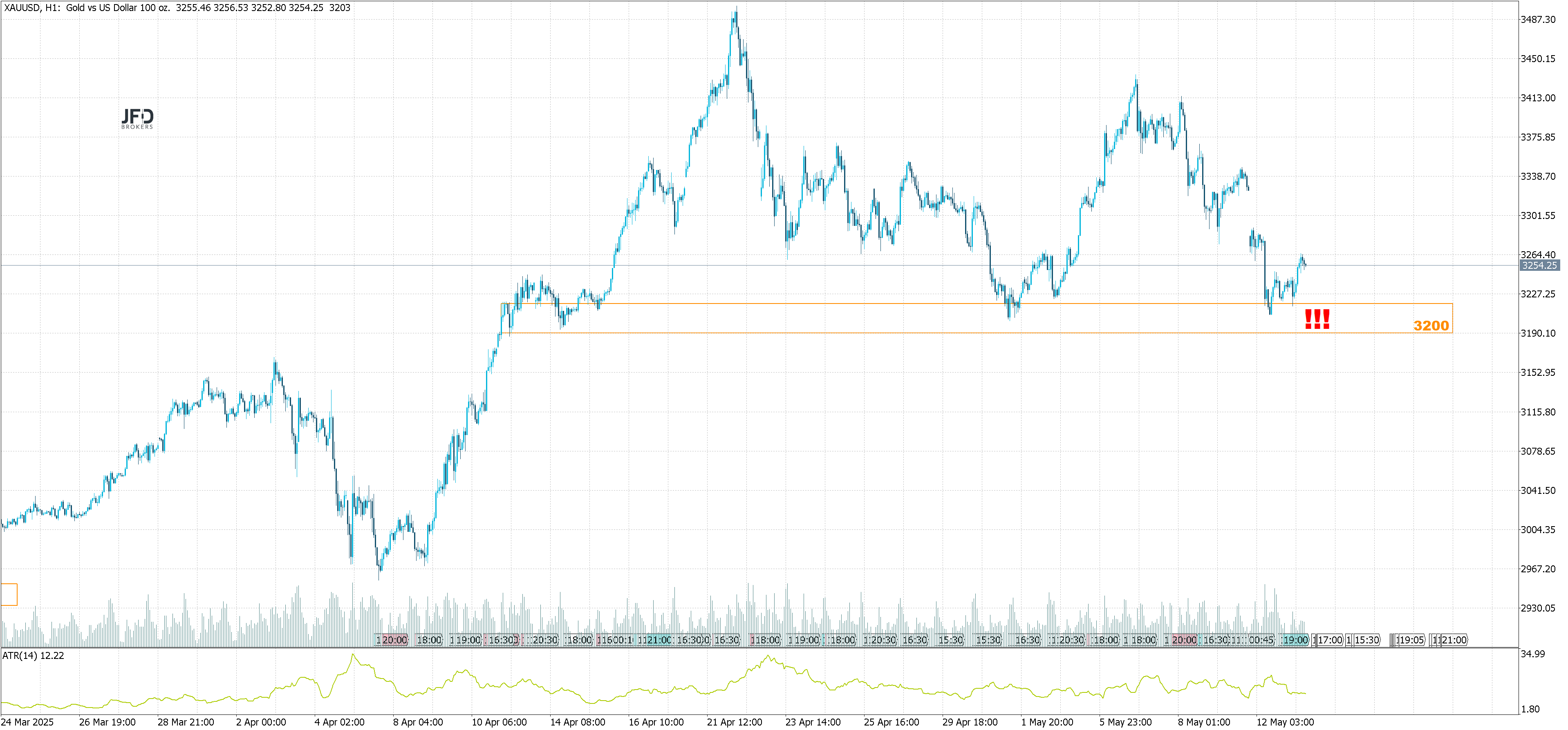 From a technical perspective, the area around $3,200 is now crucial. If this level holds, and if Donald Trump adopts a more moderate tone in relation to trade talks, the market could indeed dip below this support.
