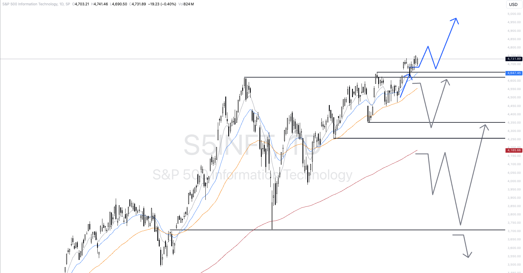 Below the EMA 200 at around 4180 points, the rally would be over for us analytically and a much more pronounced correction towards 3,700 and later 3,400 points would have started. This is currently unlikely.