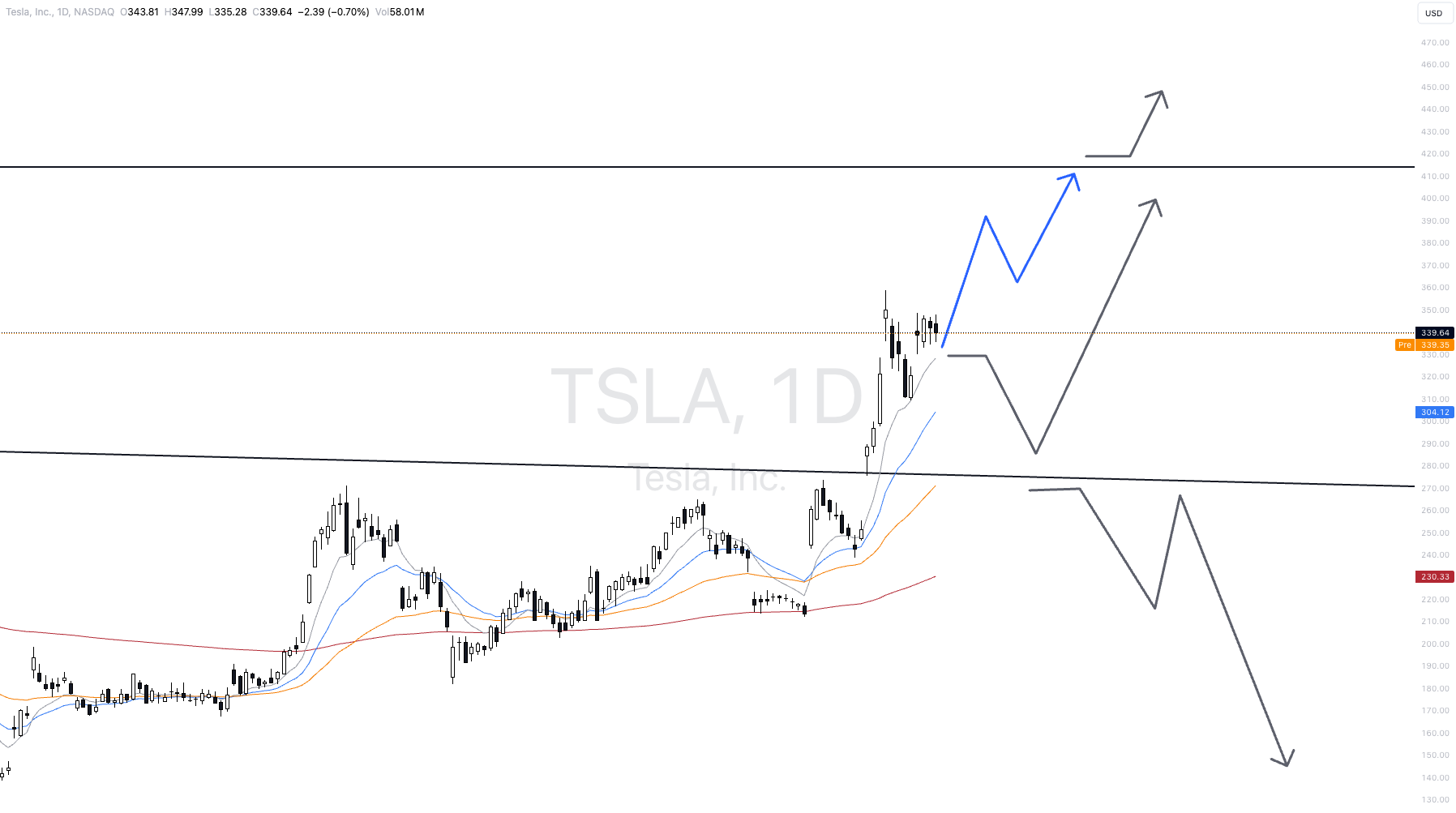 The stock is a clear winner of the US election. Currently, it has been consolidating at a high level for a few days. Our main scenario envisages a direct rise to the all-time high in the region of USD 415. A breakout above this level is also anything but impossible.