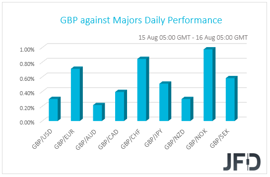 GBP-traders took the UK retails sales slightly better than their US counterparts. The British pound was strong against its G10 companions. The UK retail sales figures came out much better than expected. The July core retail sales on a MoM and YoY basis showed up at +0.2% and +2.9%, versus the forecasted -0.2% and +2.3%, respectively. Similar story was with the headline numbers, where the MoM and YoY readings came out at +0.2% and +3.3%, versus the expected -0.2% and +2.6%. The pound traders took a liking of the data and rushed into GBP again. But as we mentioned yesterday in our daily report, once traders digest everything and understand that the numbers are still not very satisfying, as they are well below the previous figures, GBP might come under selling interest again. Let’s not exclude that the Brexit dilemma has not disappeared anywhere, which eventually could weigh in on the pound in the negative way.