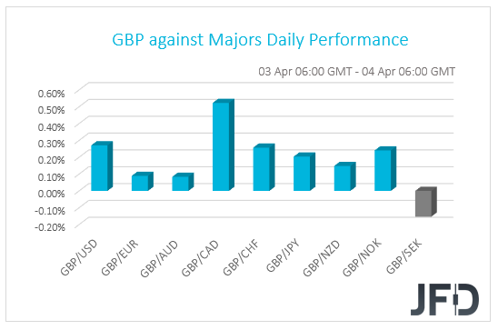 Given that GBP/CAD had gained already quite a bit, we may see a small correction to the downside first before another leg of buying. The pair might slide back to the 1.7562 hurdle, to test it from above and if it holds the rate from falling, the bulls could see it as a good opportunity to step in and drive GBP/CAD higher again. We will then examine the possibility of seeing the 1.7634 obstacle getting tested, a break of which could open the door to the 1.7716 barrier, marked by the intraday swing high of March 26th and also by the highs of March 7th and 19th.