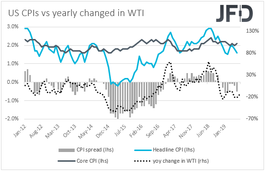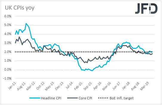 However, if indeed inflation slows as expected, and the core CPIF rate also pulls back, this may force officials of the world’s oldest central bank to push back their guidance on rates, perhaps closing the door to the possibility of a hike later this year. Another important factor to take into account is the ECB’s hints with regards to a potential rate cut next month, which may also be accompanied by more measures, such a restart of QE. Remember that the Riksbank has been usually following the footsteps of the ECB in recent years and thus, this increases the chances for a more cautious stance by Swedish officials.