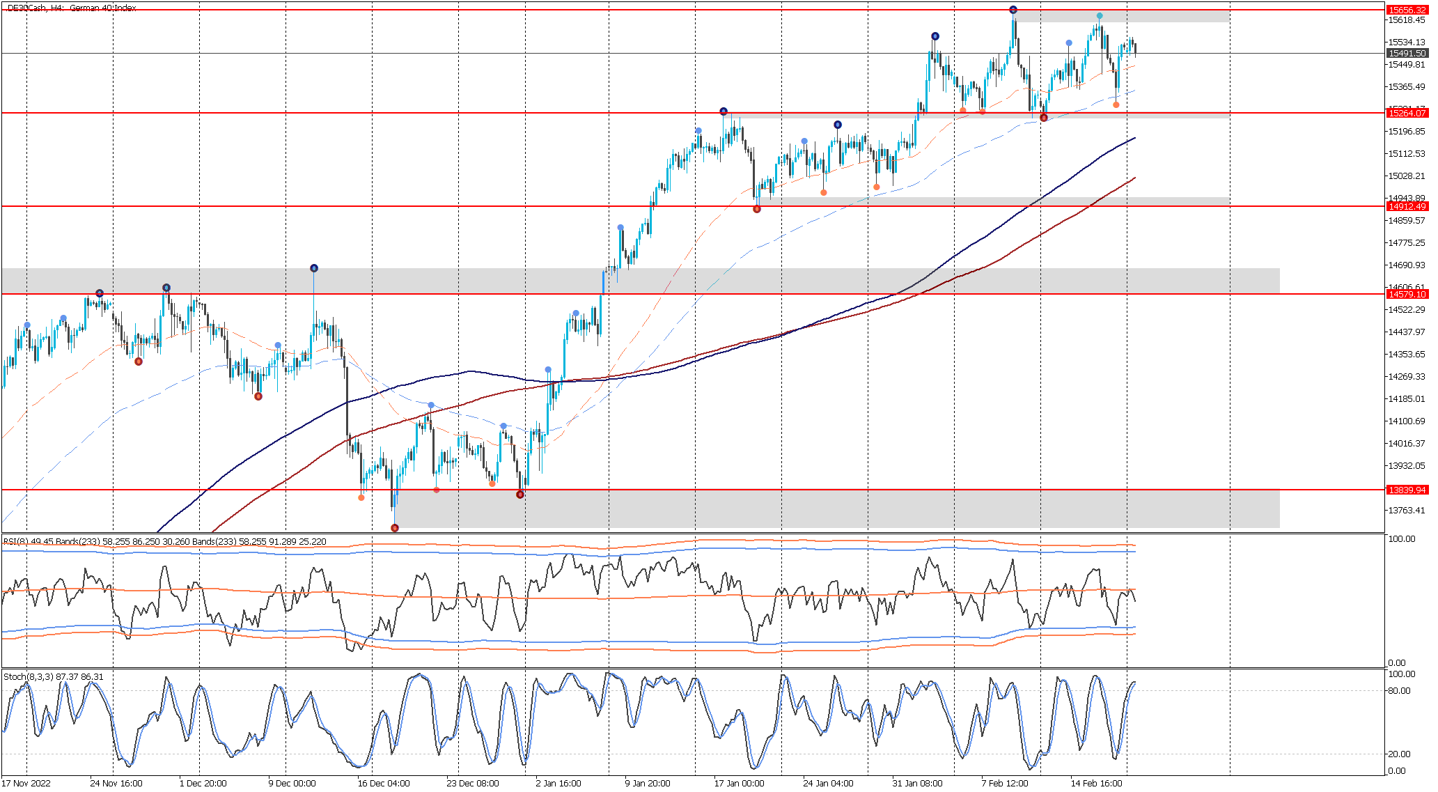 Gráfico del índice alemán DAX40 – H4 - JFD Brokers – Metatrader 5 (20/02/2023) - El trading es arriesgado. El rendimiento pasado no es indicativo de resultados futuros