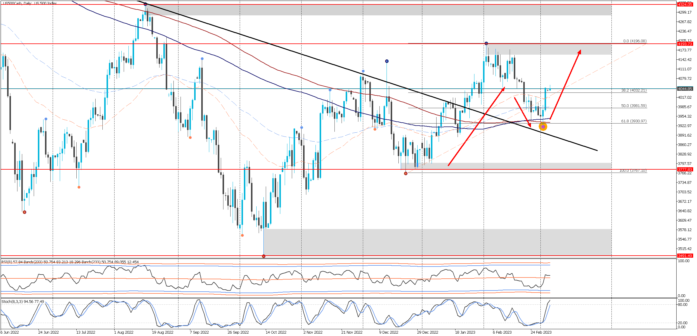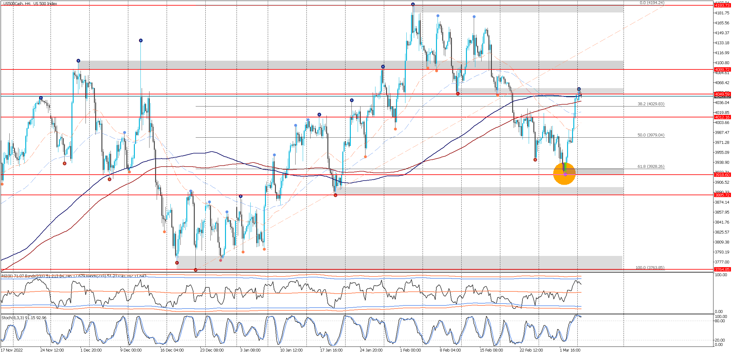 Gráfico del índice SP500 (.US500Cash) – H4 - JFD Brokers – Metatrader 5 (06/03/2023) - El trading es arriesgado. El rendimiento pasado no es indicativo de resultados futuros