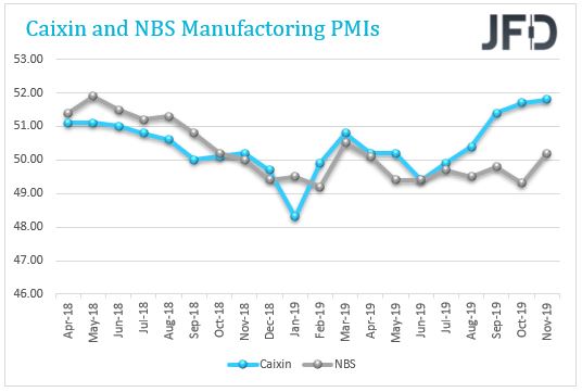 Pero durante las primeras horas de la mañana asiática, China entregará algunas cifras de PMI para el mes de diciembre. Estas serán las lecturas, que mostrarán cómo se han desempeñado las fábricas chinas en el mes de diciembre, para que podamos tener una visión final de cómo se desempeñó el sector durante 2019. Aunque parece que no hay pronósticos disponibles para el PMI compuesto, Se cree que los PMI manufactureros y no manufactureros de NBS han disminuido un poco. Se espera que el número de fabricación haya disminuido fraccionalmente, de 50.2 a 50.1, y se prevé que la cifra no manufacturera se haya movido de 54.4 a 53.6. Si los números salen como se esperaba, esto todavía significaría que el sector está en territorio expansivo, ya que las lecturas estarían por encima de 50.